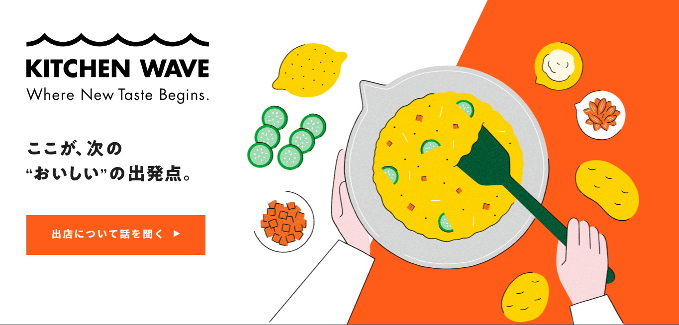 지난 9월 오픈한 키친웨이브 1호점은 주택가와 IT 스타트업이 밀집되어 있어 배달 음식 수요가 높은 도쿄 시나가와 고탄다 지역에 위치해있다. 일본의 타 공유주방은 2~3평으로 공간이 매우 협소한 것에 반해 키친웨이브는 4~5평 대의 공간과 고품질의 주방 설비를 합리적인 가격에 제공해 음식사업자들의 초기 창업 비용 부담을 낮췄다.