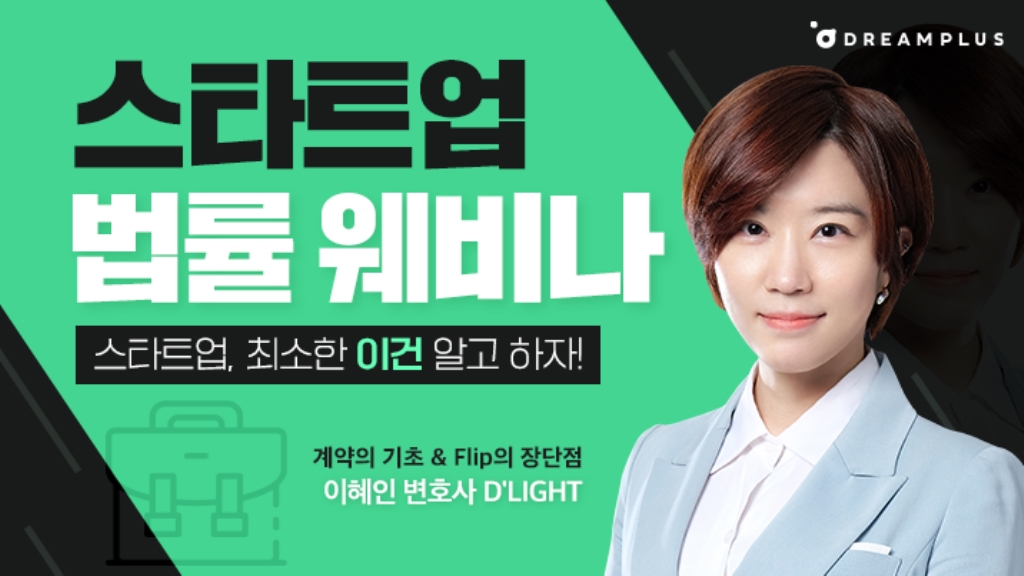 드림플러스에서 주최하는 ‘[한화생명 드림플러스] 스타트업 법률 웨비나 : 계약의 기초 & 플립’이 오는 10월 19일 화요일 14시에 진행된다. 온라인 웨비나로 진행되는 이번 행사는 계약의 기초 & Flip의 장단점이라는 주제로 구성된다. ▲계약의 기초 ▲Flip의 정의와 장단점 검토의 순으로 프로그램이 진행될 예정이다. 연사는 법무법인 디라이트의 이혜인 변호사가 맡는다. 스타트업 관계자 또는 계약과 Flip에 관심 있는 누구나 참여할 수 있다. 웨비나에 대한 자세한 내용 확인과 참가 신청은 이곳에서 할 수 있다.