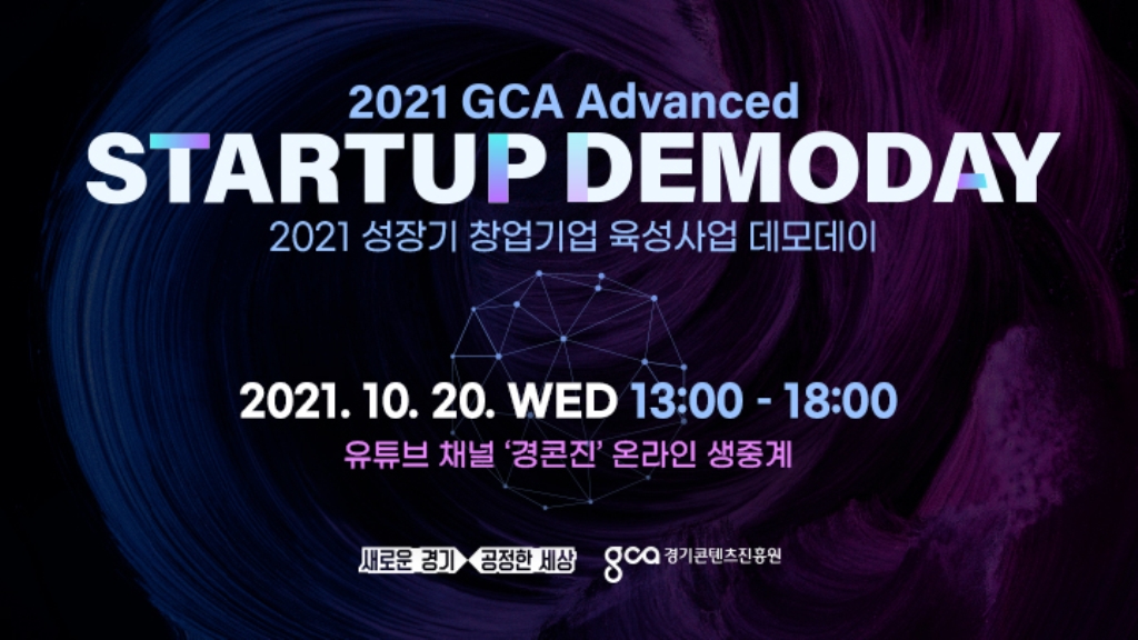 경기콘텐츠진흥원에서 주최하는 ‘2021 GCA Advanced STARTUP DEMODAY 2021’이 오는 10월 20일 수요일 13시에 진행된다. 온라인 웨비나로 진행되는 이번 행사는 성장기 창업기업 육성사업 데모데이를 진행할 예정이다. 프로그램은 ▲개회식 ▲IR 피칭 1부 (9개 팀) ▲BREAK TIME ▲IR 피칭 2부 (9개 팀) ▲시상 발표 및 폐회식 ▲투자자와 스타트업 1:1 투자 상담회 순으로 진행된다. 투자자, (예비) 창업가, 스타트업 지원 기관 등 창업에 관심 있는 누구나 참여할 수 있다.