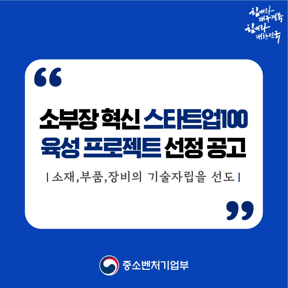 중기부 차정훈 창업벤처혁신실장은 “제조업의 근간인 소재·부품·장비 산업의 경쟁력 제고를 위해 소재·부품·장비 스타트업이 기술개발, 실증, 양산까지 지속적으로 성장해 나갈 수 있도록 적극 지원할 것”이라고 밝혔다.