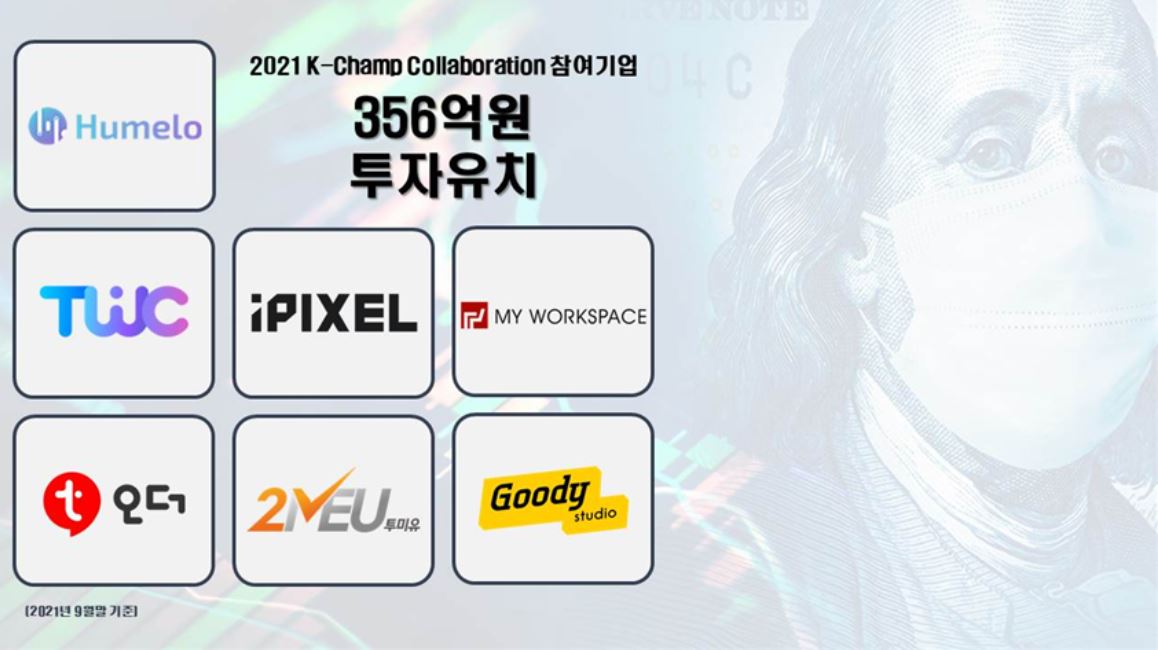 경기창조경제혁신센터(센터장 신현삼, 이하 ‘경기혁신센터’)는 15일 센터의 대표 오픈이노베이션 프로그램인 K-Champ Collaboration(이하 ‘K-챔프 콜라보레이션’) 참여기업 23개사가 누적 356억 원의 투자를 유치했다고 밝혔다.