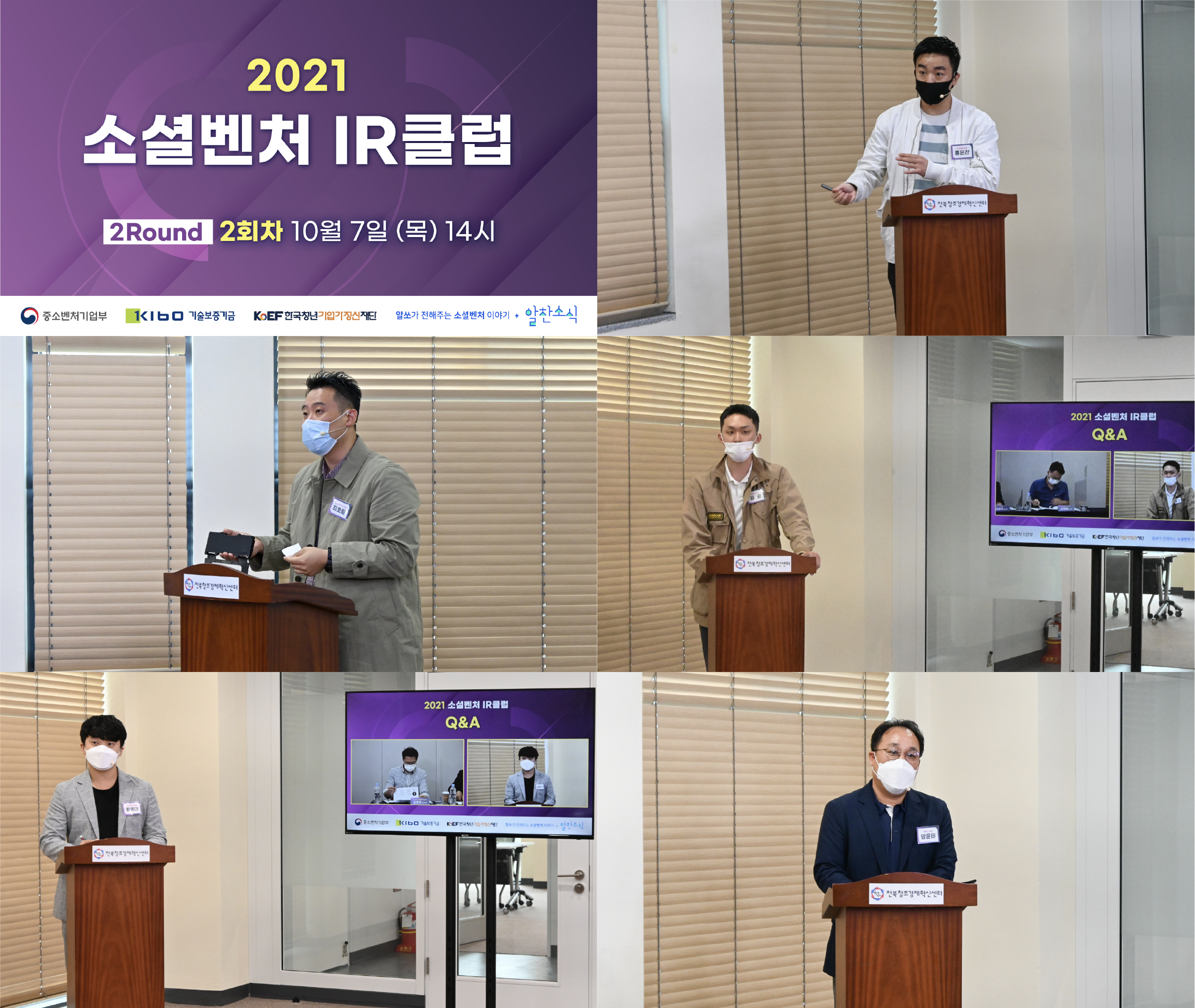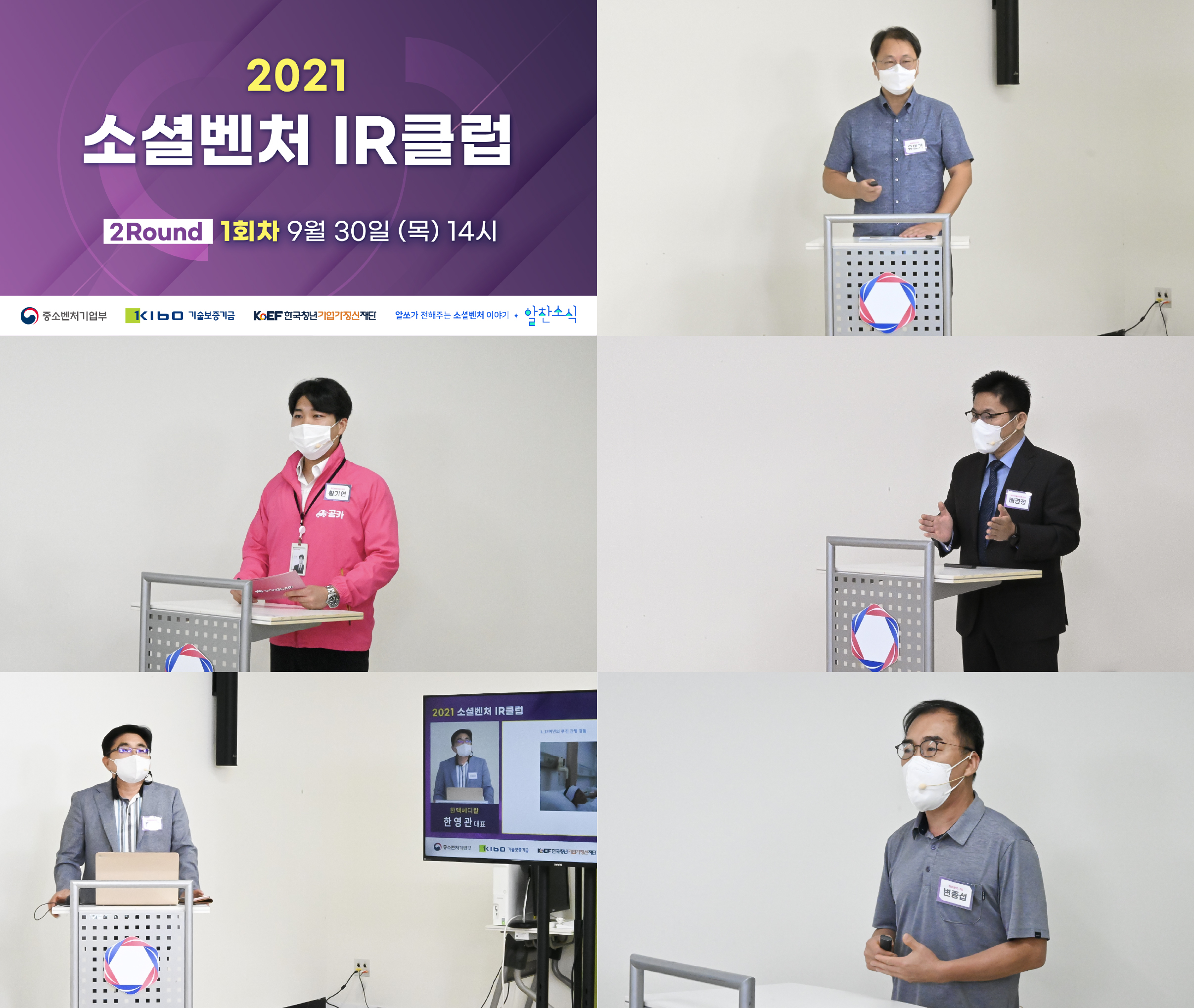 2021 소셜벤처 IR클럽은 올 9월부터 사회적 거리 두기 단계를 준수하며 온라인 생중계됐다. 2라운드에서는 소셜벤처 10곳(▲알엠케이 ▲액티브에이디 ▲케이비엘러먼트 ▲한맥메디칼 ▲해피앤굿 ▲구선손반 ▲부름커뮤니티 ▲캥스터즈 ▲해시브랜드 ▲홈워터)이 참석했다. 심사 기관으로는 ▲나눔엔젤스 ▲다담인베스트먼트 ▲한양대학교 기술지주회사 ▲고려대학교 기술지주 ▲더임팩트 ▲전북지역대학연합기술지주 총 6곳이 참석했다.