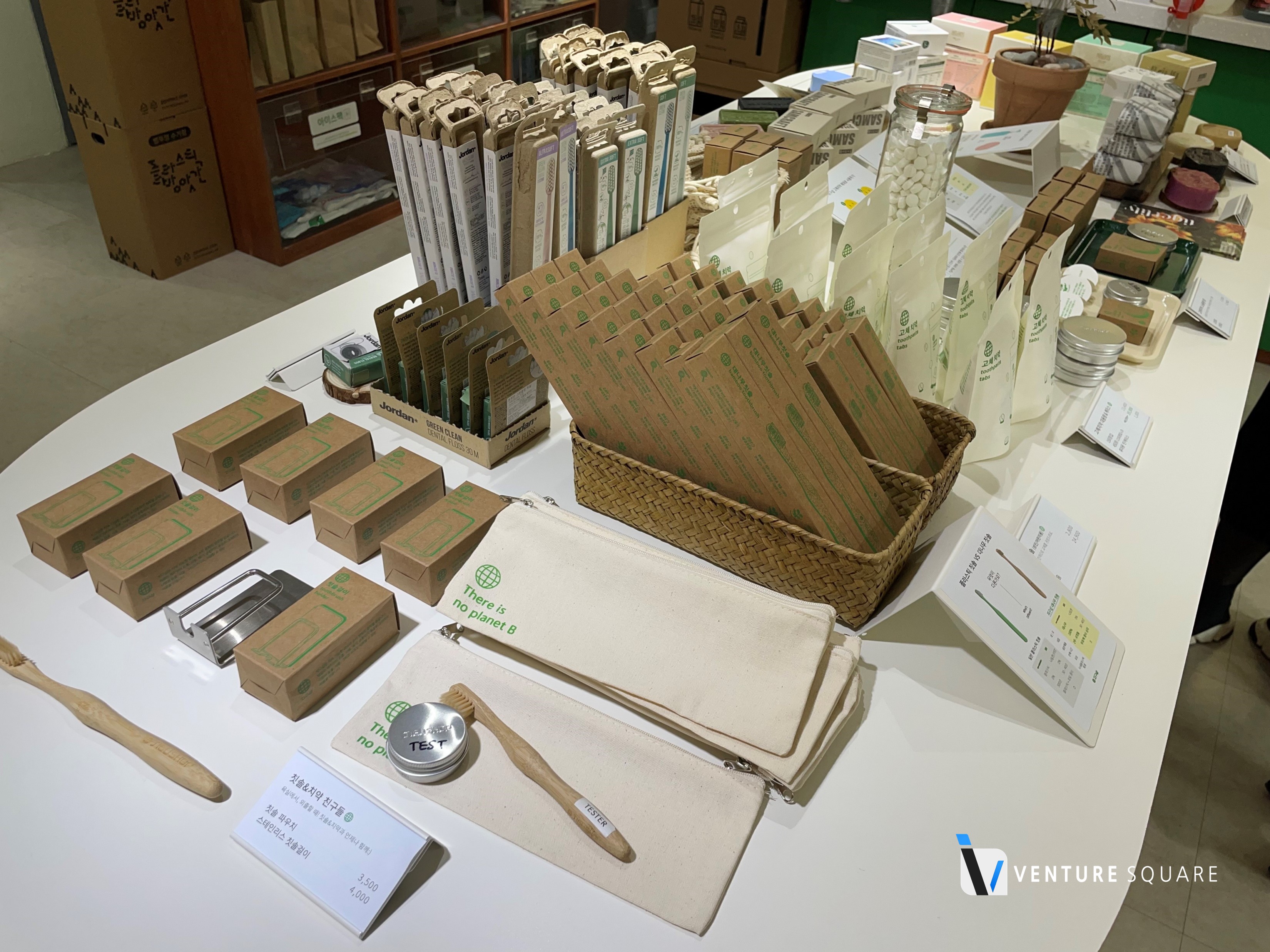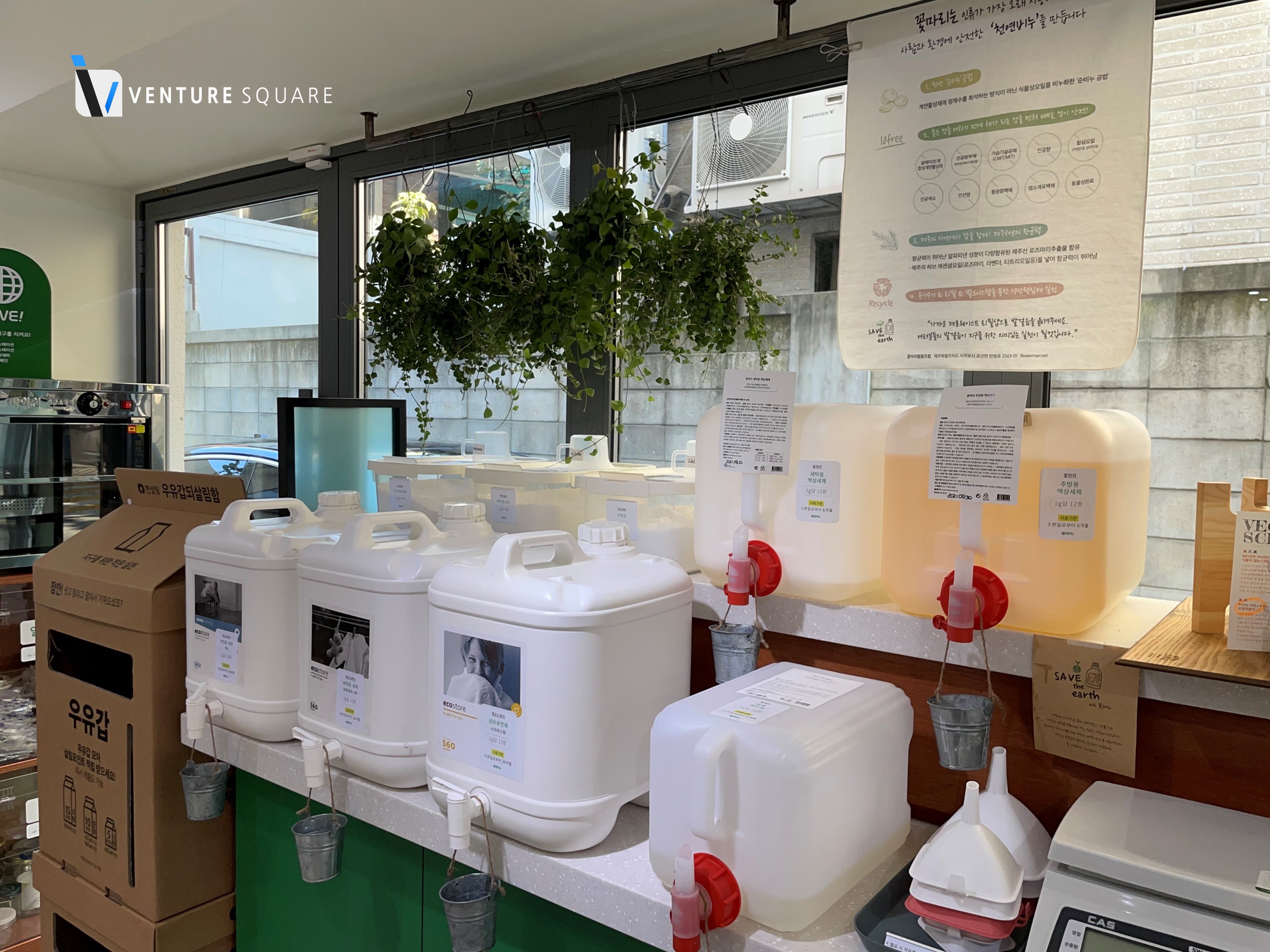 믿고 사용할 수 있는 자체 제작 상품과, 깐깐한 기준으로 엄선된 입점 제품들은 물론 플라스틱 프리(plastic-free)를 실천할 수 있도록 직접 용기를 가져와 샴푸나, 세제 등의 내용물을 담아 구매할 수 있는 공간인 ‘리필 스테이션’도 있었다.