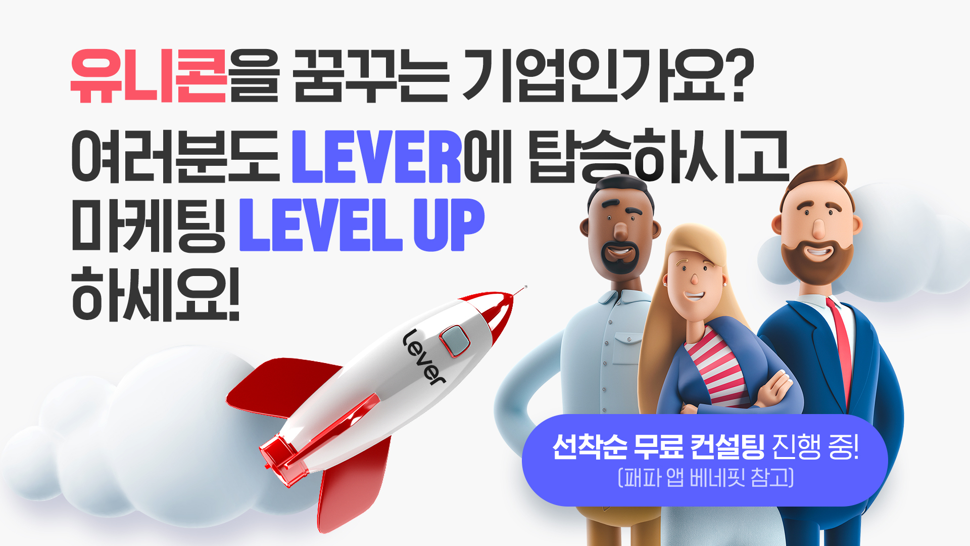 레버는 빅데이터와 AI 알고리즘을 통해 복잡한 디지털 마케팅 매체 세팅을 자동화하고 최소 예산으로 광고효율을 높일 수 있는 솔루션이다. 디지털 마케팅이 처음인 실무자들도 쉽게 접근할 수 있도록 한 곳에서 간편하게 광고를 세팅하고 효율을 확인할 수 있는 대시보드와 통합 리포트 기능도 제공한다. 또한 솔루션 이용 과정에서 전담 매니저의 밀착 케어를 통해 휴먼 어드바이저 서비스를 받을 수 있다.