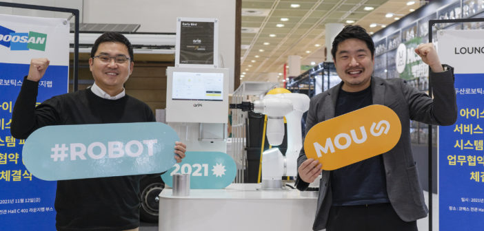 서비스 로봇 스타트업 라운지랩(대표 황성재)이 두산로보틱스와 협동로봇 솔루션 활성화 및 아이스크림 서비스 자동화 시스템을 위한 업무 협약을 체결했다고 15일 밝혔다. 라운지랩은 올해 초부터 두산로보틱스의 협동로봇을 활용해 신규 로봇 솔루션을 선보여왔다. 특히 아이스크림 로봇 아리스는 지난 4월 라운지랩에서 국내 최초로 선보인 후 빠르게 신규 매장을 확장해온 만큼, 지속적이고 안정적인 서비스로봇 개발 및 생산을 위해 이번 협약을추진하게 되었다. 양사는 이번 업무협약을 통해 협동로봇 공급-자동화 시스템 개발의 파트너쉽 관계를 맺는다. 긴밀한 협업관계를 바탕으로 △서비스 자동화 시스템 협력 △협동로봇 공동 활용 △기술 인력 지원 및 정보 교류 △콘텐츠 개발 등 다양한 부문에서 다층적인 협력을 이어나갈 예정이다. 특히 라운지랩은 자체 개발 중인 인공지능 기반 스마트 그리퍼 ‘그리퍼 X’를 두산로봇과 호환될 수 있도록 제작한다는 계획이다. ‘그리퍼X’는 머신러닝 기술을 활용해 다양한 형태의 비정형 사물을 제어할 수 있는 스마트 그리퍼로, 산업현장보다 다양한 외부요인이 존재하는 리테일 환경에 적합하도록 개발 중이다. 12일 진행된 협약식은 커피 업계의 새로운 트렌드를 소개하는 박람회 ‘서울카페쇼’가 개최된 삼성동 코엑스 전시장에서 진행되었으며 황성재 라운지랩 대표와 두산로보틱스 류정훈 대표 및 임직원들이 참석했다. 황성재 라운지랩 대표는 “안정적이고 정밀한 기술력을 가진 두산로보틱스의 하드웨어와 라운지랩의 인공지능 소프트웨어 기술을 더해, 더욱 발전된 로봇 자동화 솔루션을 선보일 수 있을 것으로 기대하고 있다”며 “지속적인 연구 개발을 통해 그동안 선보여온 서비스 로봇 기술의 완성도를 높이고, 자동화 솔루션 비즈니스를 확장해 나갈 것”이라고 밝혔다. 두산로보틱스 류정훈 대표는 “주로 산업용으로 활용되던 협동로봇의 사업 영역이 서비스 로봇 분야로 확대되면서 우리의 일상 속에 빠르게 스며들고 있다"면서, “국내 1위 협동로봇 기업인 두산로보틱스와 창의적인 라운지랩의 시너지를 통해 서비스 로봇 분야의 저변을 확대하고, 고객 수요에 최적화된 자동화 솔루션 공급을 위해 노력하겠다"고 밝혔다. 한편, 지난 10월 ‘로보틱스 리서치(Robotics Research)’ 그룹을 출범하고 UNIST와 산학협력을 맺는 등 로봇 기술 연구를 강화해온 라운지랩은 지속적인 사내 역량 확대를 위해 소프트웨어 및 하드웨어 개발, 인사, 디자인 등 다양한 직군에 걸쳐 채용을 진행 중이다. 관련 기사 더 보기 https://www.venturesquare.net/839343