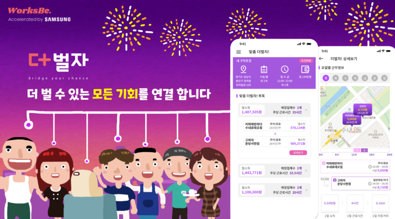이 회사의 ‘더벌자’는 수많은 구인구직 정보 속에서 사용자가 일일이 자신에게 맞는 일자리 또는 인재를 직접 찾아야만 했던 기존 플랫폼과 달리, 구직자는 ‘원하는 시간대’에 ‘원하는 일’을 하며 ‘원하는 소득’을 벌 수 있는 일자리를 구하도록 도와준다.