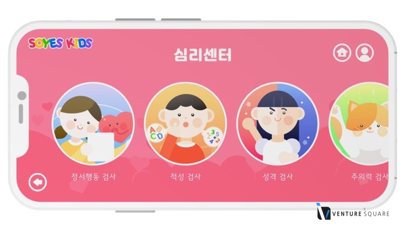 소예키즈 심리검사는 앱 속 가상의 공간에서 아이가 아바타와 정서행동적 고민을 이야기하게 하고, 자신이 좋아하는 직업을 토너먼트 형식으로 고르며 적성을 찾거나 상황별 선택을 통해 성격을 파악하는 등 다양한 검사를 놀이하듯 참여하게 구성했다.