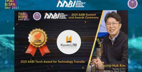 케빈랩㈜(김경학 대표)이 ‘2021 AABI SUMMIT AND AWARDS CEREMONY’에서 횃불기술전환상(2021 AABI Torch Award for Technology Transfer)을 받았다. 아시아창업보육협회(AABI, Asian Association …