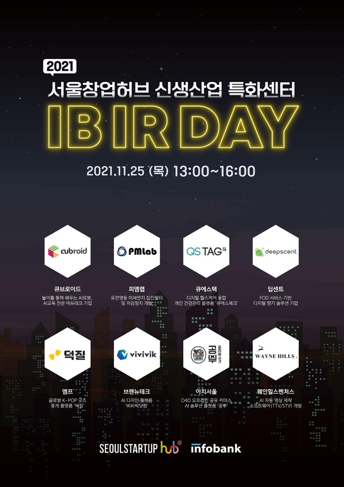 인포뱅크 아이엑셀(대표 홍종철)이 주최한 ‘2021 서울창업허브 신생산업 특화센터 IB IR Day’가 개최됐다.