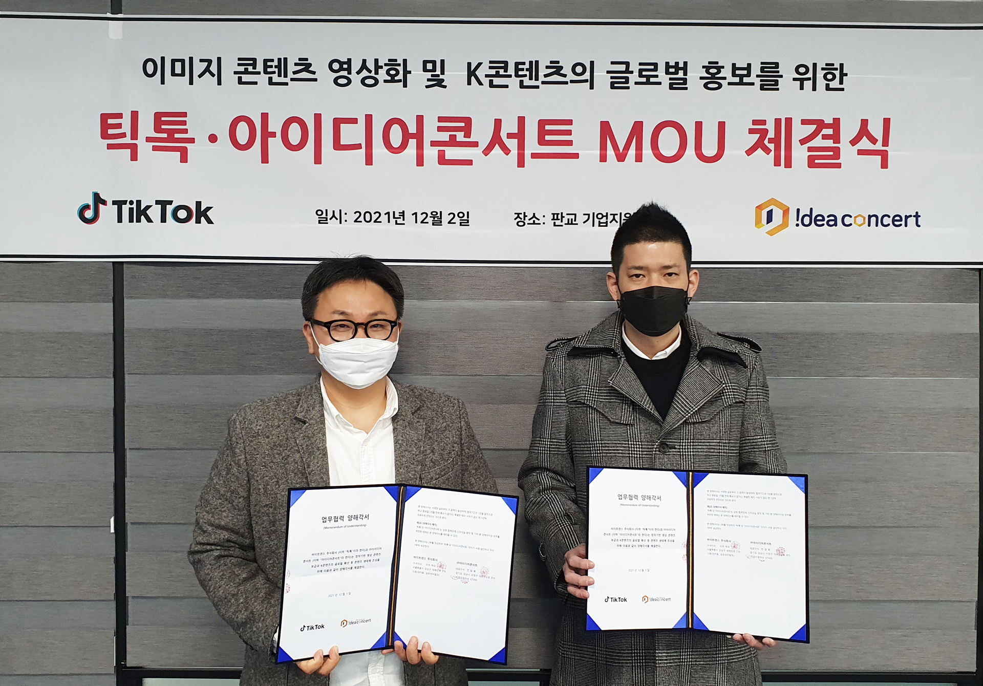 글로벌 숏폼 모바일 비디오 플랫폼 틱톡과 (주)아이디어 콘서트는 업무 제휴를 체결하고 웹툰, 만화, 동화, 게임, 캐릭터 등 이미지 기반 콘텐츠의 영상화를 통해 K콘텐츠의 글로벌 홍보를 위한 협력 사업을 추진한다.