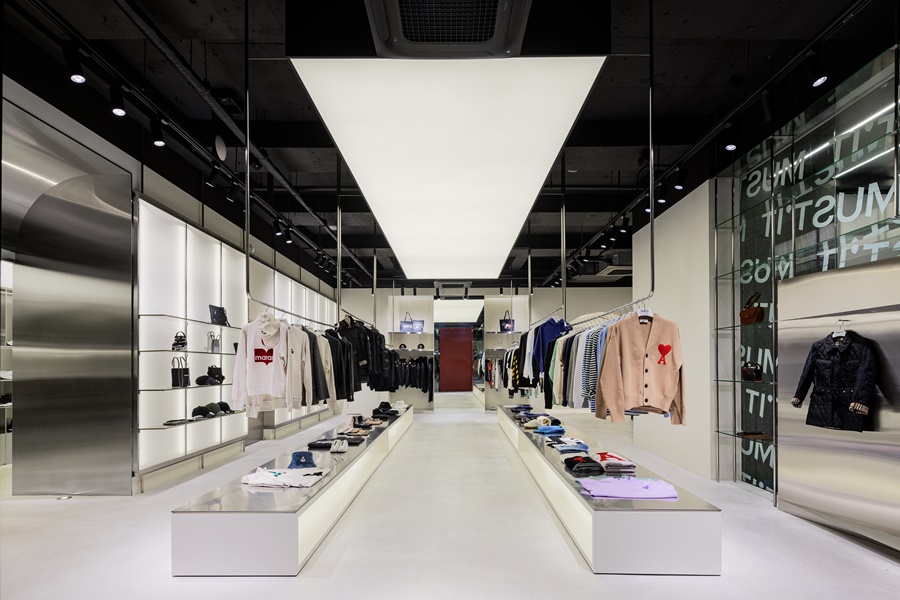 머스트잇 쇼룸은 명품 고유의 아이덴티티를 느낄 수 있는 트렌디하면서도 고급스러운 감성의 인테리어로 꾸며진 점이 특징이다. 패션쇼 런웨이를 모티브로 한 ‘컨템포러리존’과 명품의 본고장인 이탈리아 부티크를 재현해둔 듯한 ‘럭스존’으로 나뉘며, 각 공간은 컨셉의 특성에 맞는 브랜드 상품들로 구성된다. 피팅룸의 경우, SNS를 통해 자신의 착장을 인증하는 MZ세대의 트렌드를 반영해 거울을 자유롭게 활용할 수 있는 엘리베이터와 파우더룸 컨셉으로 꾸며졌다.
