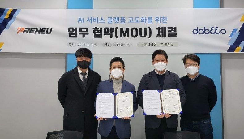 무인 항공기 제조 및 개발 전문 기업 프리뉴(대표 이종경)는 인공지능 기반 공간 정보 기술 기업 다비오(대표 박주흠)와 12월 3일(금) ‘AI 서비스 플랫폼 고도화’를 위한 업무 협약을 체결했다고 밝혔다.