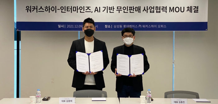 IoT ‘미니바Ⓡ’ 기반 식음료 구독 서비스 ㈜워커스하이는 9일 서울시 삼성동에 위치한 롯데벤처스 강당에서 ㈜인터마인즈와 AI 무인판매 사업 업무협약(MOU)을 체결했다고 밝혔다. 이날 협약식에는 워커스하이 김충희 대표와 인터마인즈 김종진 대표를 비롯한 양사 관계자들이 참석했다. 이번 협약식을 통해 양사는 △AI기반 자동화 판매장치 제작 협력 △ AI쇼케이스 공동활용 △기술 인력지원 및 정보 교류 △서비스 공동 개발 및 운영 등에 협력하기로 했다. 김충희 워커스하이 대표는 “자사 IoT ‘미니바Ⓡ’에 인터마인즈의 강력한 AI기술을 접목해 더욱 자동화되고 개인 맞춤형 식품구독 서비스를 제공할 수 있을 것”이라고 말했다. 김종진 인터마인즈 대표는 “양사의 협력으로 마이크로화, 비대면화 경향이 뚜렷해지고 있는 유통시장에 가장 혁신적인 쇼핑 채널로 자리매김할 것으로 확신한다”고 말했다. 한편 워커스하이는 롯데칠성의 사내벤처 프로그램을 통해 분사한 기업으로, 분사와 동시에 국내외 굴지의 기업에서 관심을 받아 다양한 기업에서 서비스를 제공하고 있다. 자체 개발한 IoT 미니바를 활용한 오피스 간식 서비스를 비롯해 운동 시설, 숙박채널 등 다양한 공간에서 맞춤형 무인스토어를 운영하며 기술력을 기반으로 빠르게 성장해 나가고 있는 기업이다. 워커스하이에 대해 더 자세한 내용은 홈페이지(www.workershigh.com)에서 확인할 수 있다.