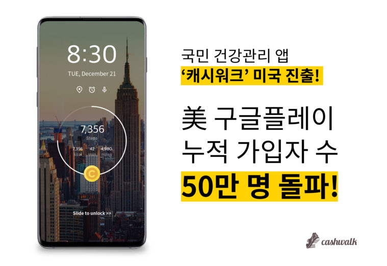 ‘넛지헬스케어’ 캐시워크, 미국 누적 가입자 수 50만명 돌파