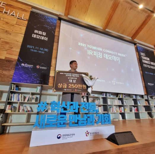 ‘(주)푸드트래블’이 문화체육관광부와 한국관광공사(KTO) 주관인 ‘2021 관광기업 이음주간 IR피칭 데모데이’와 ‘2021 12회 예비초기관광벤처 우수기업’에서 2관왕을 달성했다.