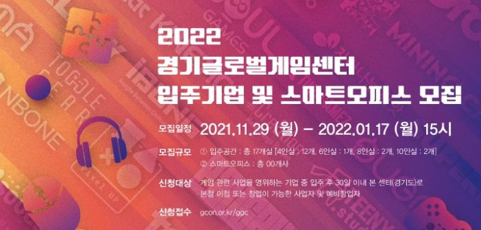 경기도는 ‘경기글로벌게임센터’에 입주할 게임 관련 기업을 오는 17일까지 모집한다. 경기글로벌게임센터는 2022년 상반기 입주사 모집에서 성남시 분당구 경기창조경제혁신센터와 스타트업캠퍼스에 입주하게 될 17개 기업을 선발한다. 입주기업은 보증금 없이 저렴한 사용료(월 6,334원/㎡ 이내)로 1년 동안 업무공간을 이용할 수 있으며 연장 심사를 통해 최대 2년까지 사용 가능하다. 또한 입주기업은 ▲법률‧세무‧회계 분야의 맞춤형 컨설팅 ▲모바일 테스트디바이스 대여 ▲클라우드 서비스 지원 등 경기글로벌게임센터의 다양한 지원 혜택을 누릴 수 있다. 특히 클라우드 서비스는 아마존의 AWS, 알리바바 클라우드, 네이버 클라우드, NHN의 게임베이스, 아주큐엠에스의 지에이더 등 입주사 선호에 맞는 다양한 서비스를 제공하고 있다. 모집 대상은 신청일 현재 경기도에서 게임관련업을 하고 있는 사업자나 예비창업자 또는 경기도로 본점 이전이 가능한 사업자다. 단, 국세와 지방세 체납사실이 없어야 한다. 입주를 희망하는 기업은 경기글로벌게임센터 홈페이지를 통해 오는 17일까지 공간지원신청서와 회사(팀)소개서 등을 제출하면 된다. 자세한 사항은 경기글로벌게임센터 홈페이지를 참조하거나 경기콘텐츠진흥원 게임·디지털혁신팀(031-776-4791/4789)으로 문의하면 된다. 한편 경기도 게임산업 육성을 위해 총 40개실 규모의 창업보육공간을 운영하고 있는 경기글로벌게임센터는 2021년 56개의 기업을 입주 지원했다. 특히 소울게임즈는 입주기간 중 출시한 루나모바일로 16억 원 이상의 매출을 달성했고 슈퍼엔진은 15억 원의 투자를 유치했다. 또 원더포션과 이한크리에이티브는 ‘메이드 위드 유니티 코리아 어워드 2021(Made with Unity Korea Award 2021)’에서 수상하는 등 다방 면에서 성과를 냈다. 관련기사더보기 https://www.venturesquare.net/837911