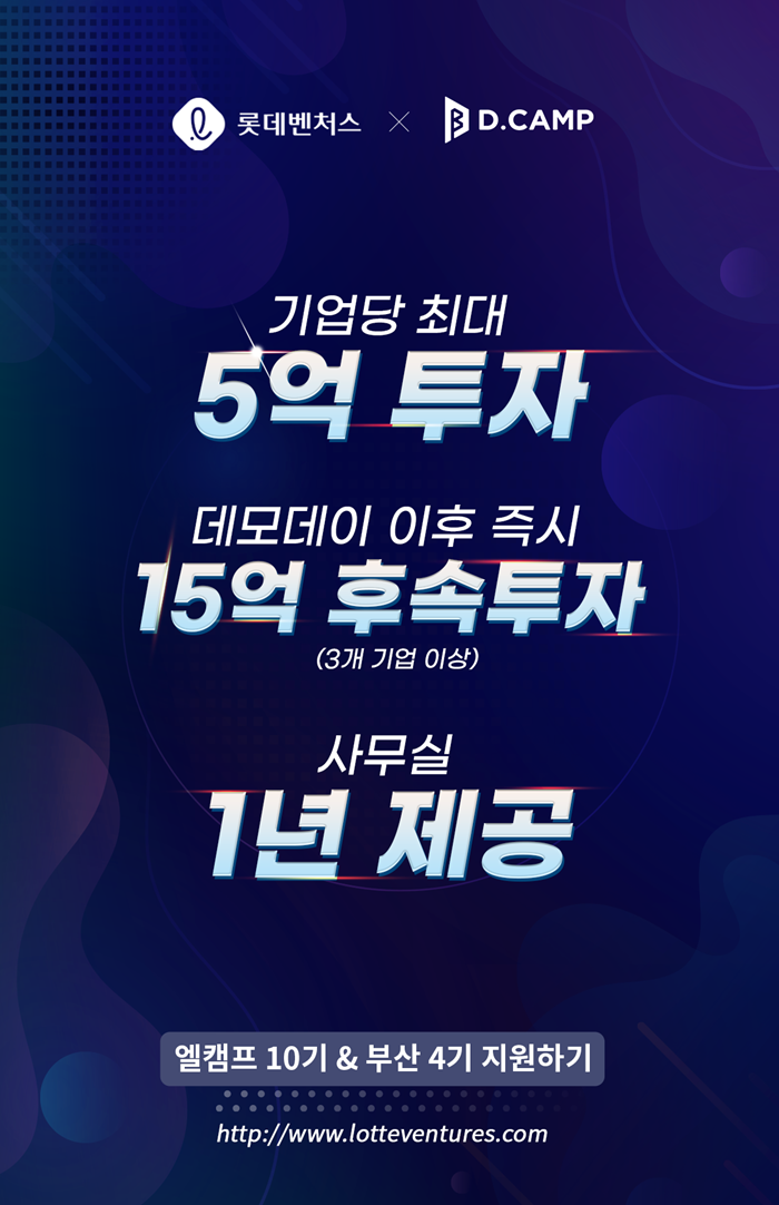 롯데벤처스(대표 전영민)는 디캠프와 공동으로 다음달 13일까지 L-CAMP(이하 엘캠프) 10기와 부산 4기에 참가할 스타트업을 모집한다고 밝혔다.
