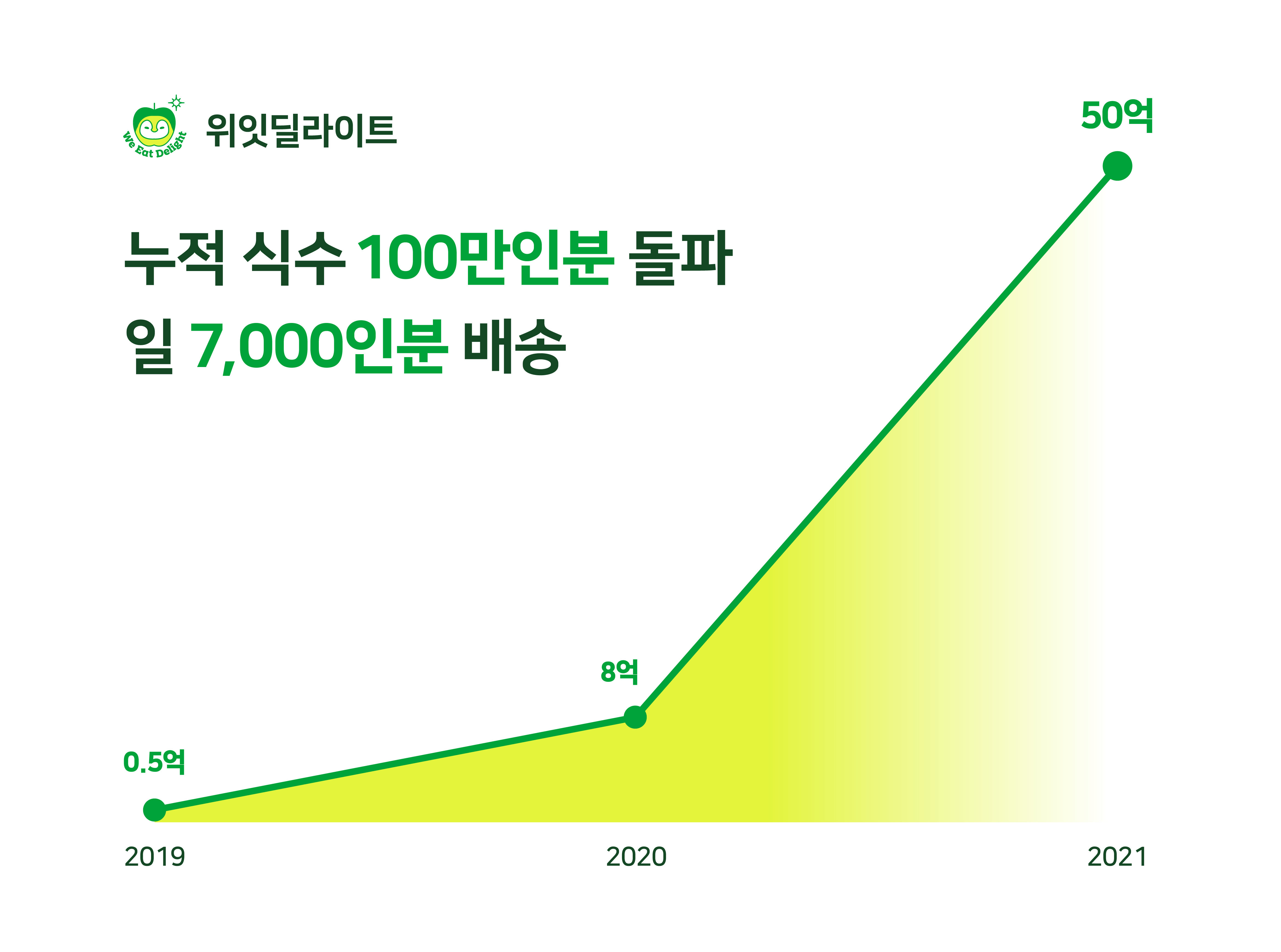 푸드큐레이션 구독 및 딜리버리 플랫폼 위잇딜라이트 운영사 푸드테크 스타트업 (주)위허들링은 지난해 매출액이 서비스 런칭 1년 8개월 만에 50억 원을 달성했다고 밝혔다.