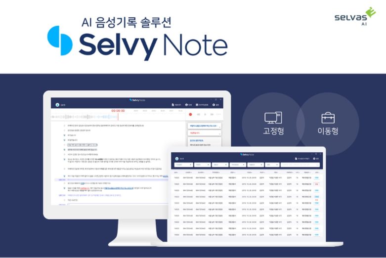‘셀비 노트’는 ‘고정형(설치형)’과 ‘이동형’ 제품 등 고객의 사용 환경에 최적화된 맞춤형 라인업으로 구성되어 있다. ‘고정형(설치형)’은 조사실, 상담실, 회의실 등 고정된 사용 환경에 최적화된 AI 음성기록 장비를 제공하며, ‘이동형’은 고성능 노트북에 인공지능 음성인식 엔진을 탑재하여 현장 방문이 빈번한 사용자가 다양한 장소로 편하게 이동하고 손쉽게 설치하여 사용할 수 있도록 휴대성을 극대화했다.