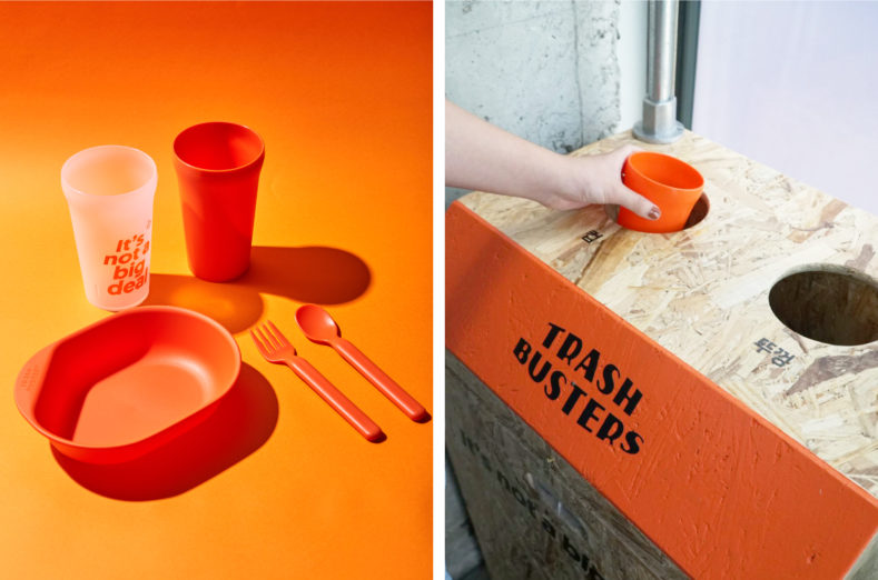 2월 다회용기 사용 누적 사용 200만 회를 달성한 트래쉬버스터즈는 재활용이 가능하며, 인체에 무해하고 오염에 강한 소재를 활용한 컵을 제작, 대여하는 다회용기 서비스를 제공하고 있다.
