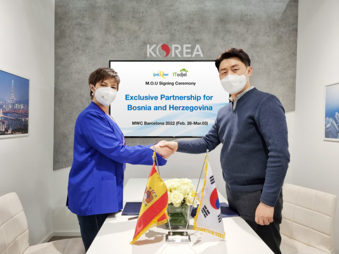 에듀테크 스타트업 ㈜지니로봇(대표 이은승)이 스페인 바르셀로나에서 개최된 세계 최대 모바일 전시회 ‘모바일월드콩그레스(MWC) 2022’에서 보스니아 헤르체고비나의 IT 및 컴퓨터부품관련산업 Katarina그룹 산하의 IT업체인 IT Odjel d.o.o 와 160만불(한화 약 19억 4000만원) 독점공급 MOU를 체결했다고 4일 밝혔다.