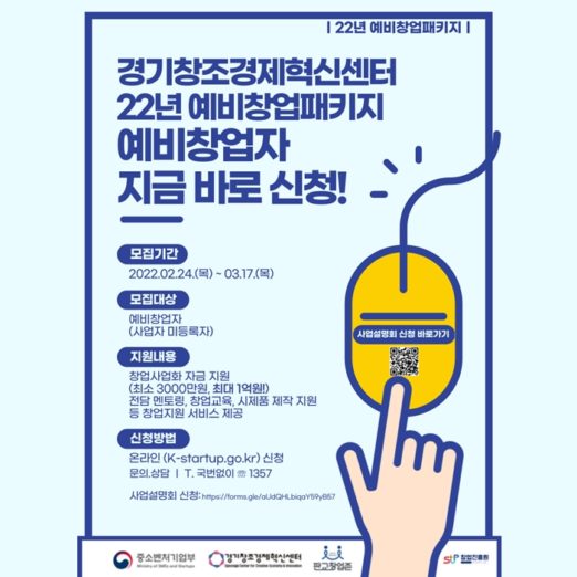한편 오는 10일 예비창업패키지 모집관련 사업설명회가 진행될 예정이다. 사전 신청 접수를 통해 온라인으로 진행되며, 사전 신청은 경기혁신센터 홈페이지 및 포스터 내 QR코드를 이용하면 된다.