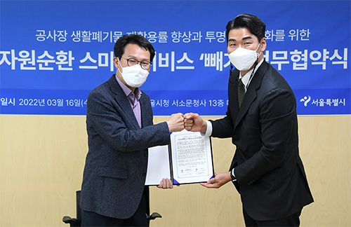 환경자원 데이터 플랫폼 ‘빼기’를 운영하는 주식회사 같다가 서울시와 공사장 생활폐기물의 편리한 배출 및 수거를 위해 수거신청 절차에 ‘빼기’를 도입하는 업무 협약식을 16일 체결했다고 밝혔다.