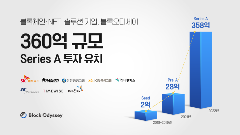 블록오디세이는 앞서 지난해 28억원 규모의 프리시리즈 A(Pre-Series A) 투자를 유치한 바 있다. 이번 시리즈 A 라운드의 투자 규모는 총 358억원으로 SK네트웍스, 해시드 벤처스, 신한금융그룹, KB, 하나벤처스, SB파트너스, 타임와이즈, 케이티엔지 등 8개사가 주요 투자사로 참여했다.