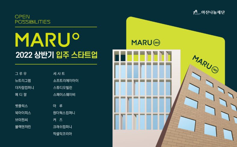 아산나눔재단(이사장 장석환)이 기업가정신 플랫폼 ‘마루(마루180/마루360)’ 2022년 상반기 입주 스타트업 17팀을 최종 선정했다.