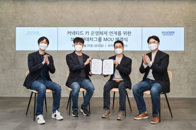 양사 간 포괄적 업무 협력을 위한 이번 MOU는 지난 25일 오후 서울 성수동 쏘카 사옥에서 박재욱 쏘카 대표, 류석문 CTO, 추교웅 현대차 인포테인먼트개발센터장, 권해영 인포테인먼트개발실장 등 양사 관계자들이 만나 체결했다.