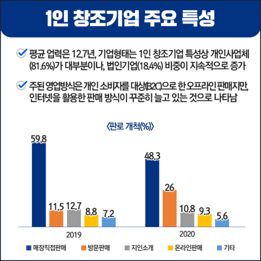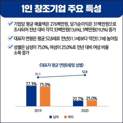 중소벤처기업부(장관 권칠승, 이하 중기부)는 30일 ‘2021년 1인 창조기업 실태조사'(이하 실태조사) 결과를 발표했다.