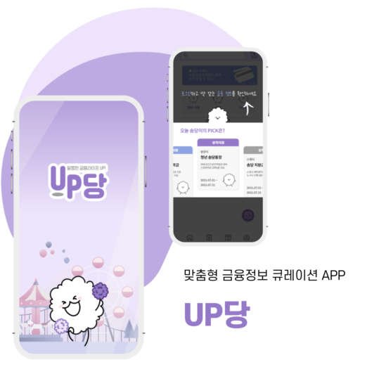 UP당 앱은 장학, 지원 사업 및 대출 서비스를 제공하는 앱으로서 국내 1만 개 이상의 산재되어 있는 국가, 자치, 비영리사업을 한눈에 볼 수 있도록 제공한다. MZ세대 자금에 대한 고민을 은행에서만 해결하는 것이 아니라 정부나 지자체의 지원 정책 등 새로운 금융상품의 경험으로 해소하고자 하는 취지에서 만들어졌다.