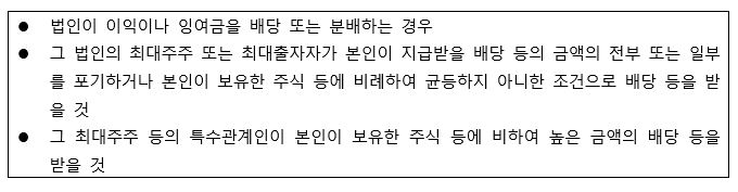 여기서 최대주주란, 해당 법인의 주주 등 1인과 그의 특수관계인의 보유주식의 합계가 가장 많은 경우의 해당 주주 등 1인과 그의 특수관계인 모두를 말한다. 그리고 특수관계인이란 본인과 친족관계, 경제적 연관관계 또는 경영지배관계 등에 해당하는 관계에 있는 자를 뜻한다.