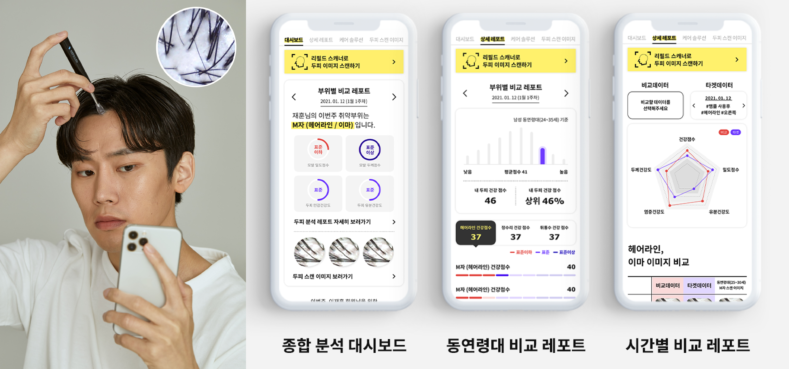 리필드는 단순히 탈모 케어 제품만을 제공하는 것이 아닌 개개인의 변화를 실증적으로 관리할 수 있는 플랫폼으로써 진단 결과와 두피 상태에 알맞은 다양한 탈모 솔루션과 맞춤형 콘텐츠를 입체적으로 제공한다.