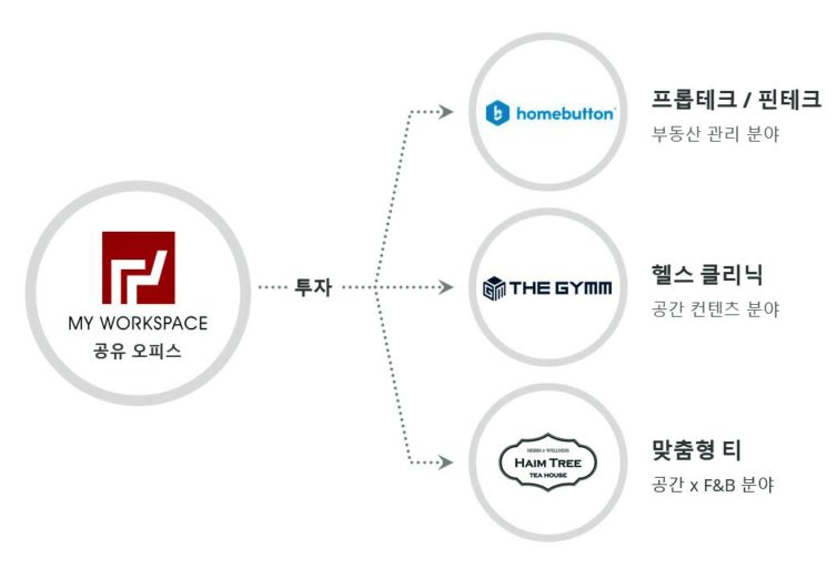공유오피스 기업 마이워크스페이스(대표 양희영)가 입주 기업과의 상생을 위해 총 3곳의 스타트업에 전략적 투자를 실시했다고 20일 밝혔다. 마이워크스페이스가 투자를 결정한 스타트업은 홈버튼, 더짐, 하임트리다. 이 기업들은 공유오피스 생태계를 관리하는 데 도움이 되거나 입주자들이 필요로 하는 서비스를 운영한다는 공통점이 있다.