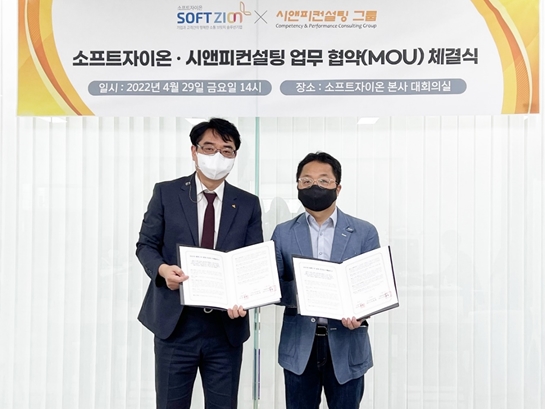 AI 및 CRM 솔루션 전문기업 ‘㈜소프트자이온’(대표 이준호)이 29일 HR 및 NCS 기반의 교육컨설팅 그룹 ‘시앤피컨설팅’과 ‘B2B 분야의 중소기업 업무효율 향상 및 상호 협력을 위한 업무협약’을 체결했다고 2일 밝혔다.