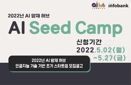 인공지능 전문 지원 기관인 ‘AI 양재 허브(센터장 윤종영)’가 ‘2022년도 AI Seed Camp’ 참여기업을 모집한다고 30일 밝혔다.