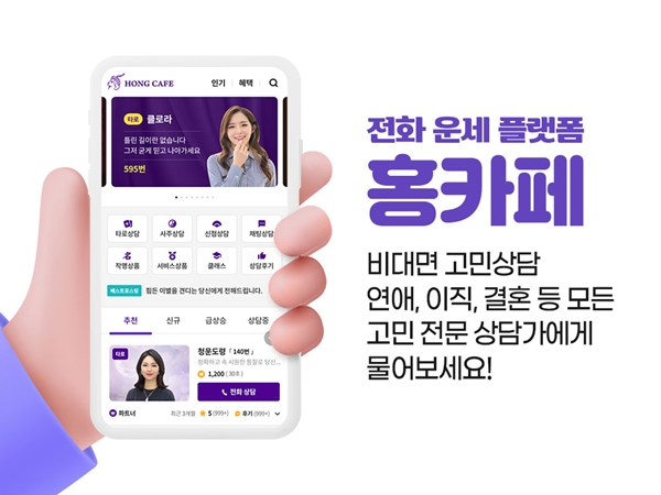 홍카페는 타로, 사주, 신점 등 다양한 서비스를 제공하는 온라인 종합 운세 상담 플랫폼이다. 500명 이상의 전문 상담가와 24시간 온오프라인으로 상담할 수 있어 지난해 10월 총 상담 건수 100만 건을 돌파했다.