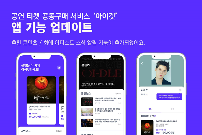 엔터크라우드에 따르면 위드코로나 체제로 전환된 작년 11월부터 공연시장 특히 뮤지컬 시장이 눈에 띄게 성장하고 있으며, 공연 티켓 공동구매 서비스 ‘아이겟’ 또한 엔데믹에 따른 공연관람 수요에 힘입어 런칭 6개월 만에 월 1억원의 매출과 13만명의 회원을 확보하였다.