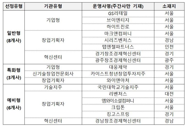 - 바이오·헬스케어, 콘텐츠·게임, 청년창업 등 특화형 운영사 지정