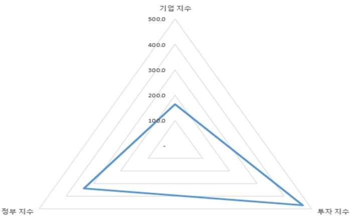 각 생태계의 세부지수를 살펴보면 창업 생태계는 기업지수 128.3, 투자지수 512.0, 정부지수 393.0, 벤처 생태계는 기업지수 199.1, 투자지수 467.8, 정부지수 381.2로 나타나, 벤처 생태계에서는 창업 생태계에 비해 상대적으로 기업지수가 높은 것으로 확인됐다.
