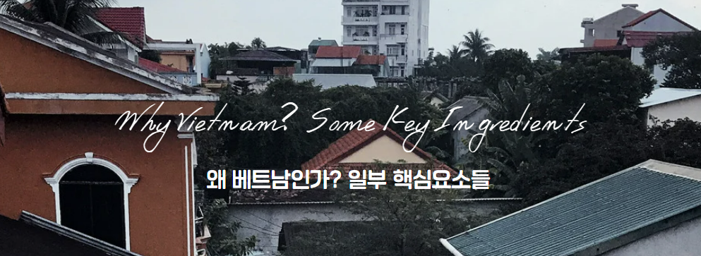 베트남이 잘 나가는 요소를 간결하게 요약하자면, 나는 이 나라에서 결집된 네 개의 근간이 되는 기둥을 지적하고 싶다. 이 네 개의 기둥은 함께 결합해 베트남이 동남아시아의 황금의 삼각지대 내에서 최대 성장 견인 요소로 자리매김하도록 하고 있다.