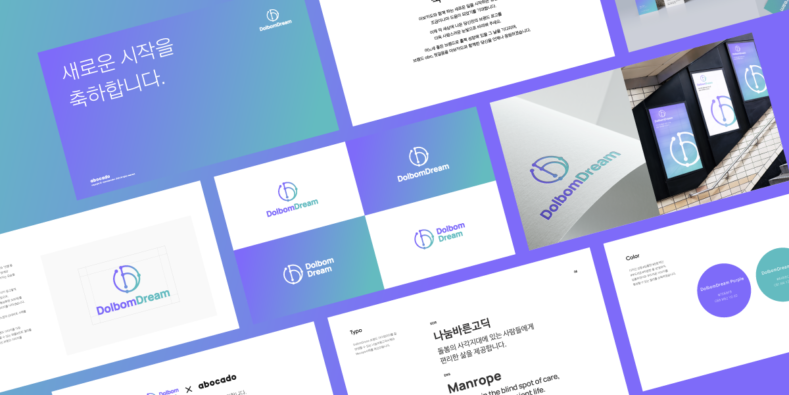 돌봄드림은 데이터를 활용하여 장애와 비장애가 경계없이 하나로 연결되는 사회를 비전으로 두고 있다. 그 비전을 로고에 표현하기 위해 데이터와 연결을 키워드로 잡아서 로고를 개발하였다. 새로운 로고는 DolbomDream 브랜드명에서 가져온 2개의 D를 겹친 형태로 서로 연결되는 느낌을 표현하였다. 또한 데이터를 형상화한 동그라미까지 더해져서 데이터를 활용하는 돌봄드림의 특징을 드러내었다.