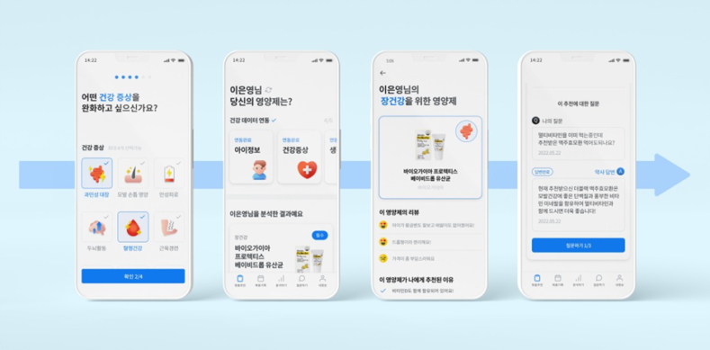 당신의 영양제는 2만여 개의 시중에 판매되고 있는 일반의약품, 국내외 영양제 데이터를 기반으로 맞춤 추천하는 서비스를 제공한다. 전문 약사진이 수집한 영양제의 성분 함량, 가격 등 정량적 수치에 전문가의 의견, 소비자 리뷰 등 정성적 평가를 더해 정제한 빅데이터 알고리즘이 건강검진, 유전자 분석 결과, 마이크로바이옴 등의 고객 데이터를 고려하여 영양제를 추천한다.