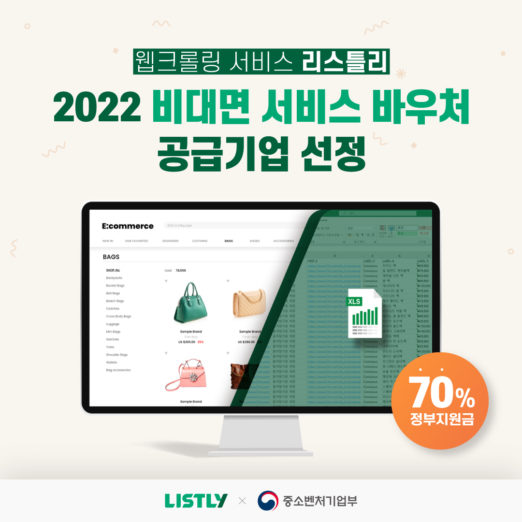 웹 크롤링 서비스 리스틀리(대표 최창민)가 중소벤처기업부가 주관하는 ‘비대면서비스 바우처’ 사업의 공급기업에 2년 연속 선정됐다.