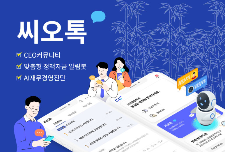 씨오톡은 기업을 운영하는 대표들이라면 누구나 가입가능한 커뮤니티 서비스로서, CEO들의 다양한 애로사항과 고충을 익명으로 공유하며 조언을 주고받을 수 있는 온라인 소통 채널을 제공한다. 또한 기업분석 알고리즘 ‘씨오’를 적용해 각종 정부지원사업을 22개의 세부 항목으로 자동 분류하고, 조건에 맞는 기업에게만 맞춤형 추천을 해주는 정책자금 ‘알림봇 서비스를 함께 제공한다.