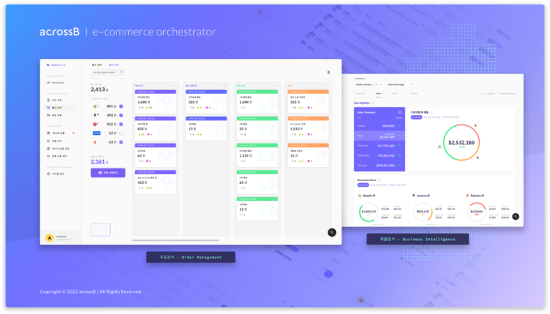 어크로스비의 물류 플랫폼은 클라우드와 머신러닝 기술을 기반으로 국경을 넘어 거래되는 크로스보더 이커머스 물류를 원스톱으로 지원한다. 어크로스비의 물류 플랫폼을 통해 기업들은 글로벌 시장 진출 시 겪는 복잡한 절차와 높은 물류 비용의 한계를 극복하고 시장을 확장해 나갈 수 있다. 특히, 플랫폼 활용을 통해 ▲ 판매채널 통합 및 프로세스 자동화 ▲ 수요 예측 기반 재고 배송 최적화 ▲ 해외 운송 비용 절감 ▲ CS 이슈 최소화가 가능하다.