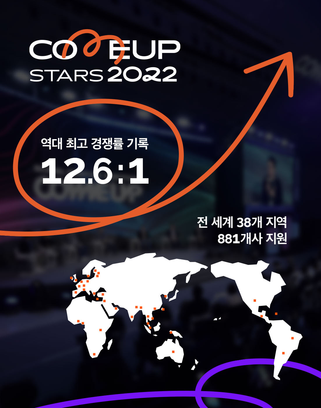 지난 7월 4일부터 8월 5일까지 약 한 달간 진행된 컴업스타즈 참가기업 모집은 총 70개사 선발에 한국을 포함한 전 세계 38개 지역 881개 스타트업이 참여해 12.6대 1의 경쟁률을 달성한 것으로 나타났다. 이는 초청 방식으로 진행된 2019년을 제외하고 2020년 9대 1, 2021년 10.9대 1을 뛰어넘는 역대 최고 수치이다.