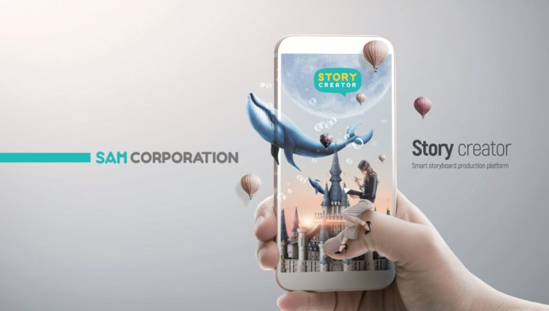 샘 코포레이션이 개발한 ‘스토리 크리에이터’는 인공지능 기반 TTS(Text to Sound)와 STT(Sound to Text) 기술을 적용해 누구나 쉽게 캐릭터와 배경, 사건 등의 정보를 조합하고 융합해 스토리보드, 스토리북, 영상, 등 다양한 형태의 창작물을 만들고 공유할 수 있다.