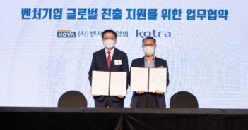 벤처기업협회(회장 강삼권)와 KOTRA(사장 유정열)는 벤처기업의 해외진출 지원을 위한 업무협약을 24일 체결했다. 부산에서 개최되는 벤처썸머포럼 행사장에서 진행된 협약식에는 벤처기업협회 강삼권 회장과 KOTRA 김윤태 중소중견기업본부장이 서명했다. 양 기관은 상호 협…